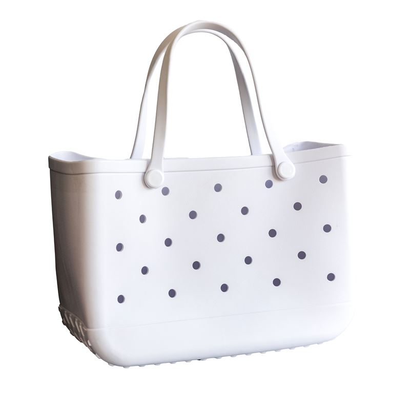 This bag is designed to be both durable and flexible with a rubber-like feel, ensuring it can handle all your beach essentials with ease. Its lightweight construction makes it easy to carry, while the spacious interior provides ample room for towels, sunscreen, snacks, and more. The selection of vibrant colours adds a chic touch to your beach look, making it suitable for both casual outings and stylish beach days.