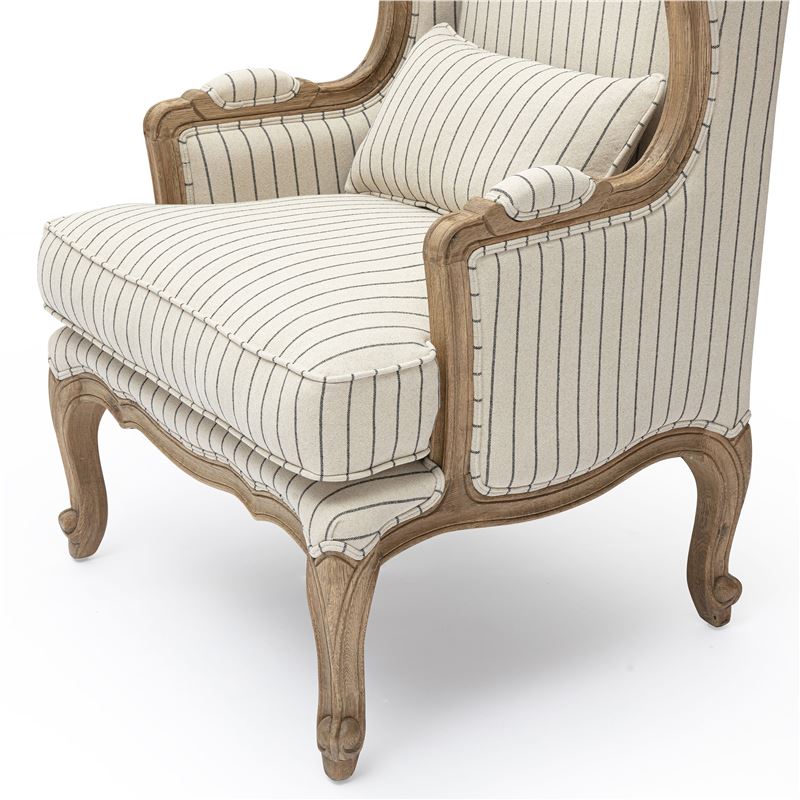 Featuring a high, gently curved back and scrolled arms, this armchair blends vintage charm with modern comfort. Its beautifully carved timber frame and cabriole legs bring a sculptural quality that makes it equally at home in a formal sitting room or a relaxed living space. Generously cushioned with a matching lumbar pillow, the Louis Armchair offers both support and luxury. Upholstered in a soft, high quality fabric, it serves as a versatile accent chair that complements a wide range of interior palettes and styles, from traditional to coastal or contemporary classic.