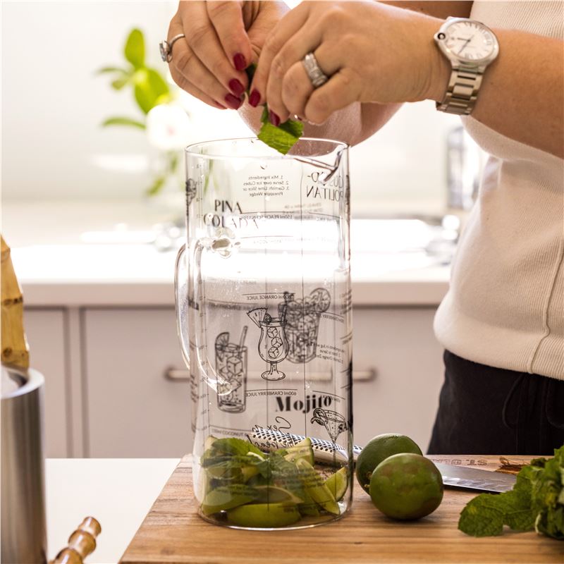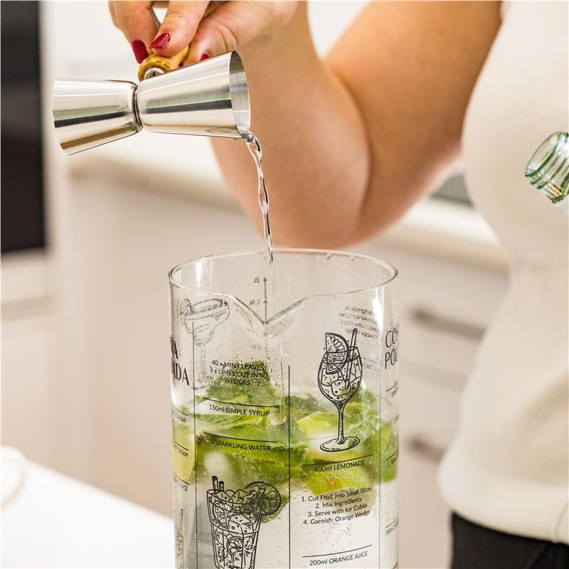 This large, sturdy jug is perfect for batching all your favourite cocktails, whether you’re hosting a party or enjoying a relaxed evening at home. The exterior is inscribed with classic cocktail recipes, making it both a practical guide and a stylish conversation piece. Crafted from clear glass, it showcases colourful drinks beautifully while adding a touch of fun and sophistication to your barware collection. Easy to use, easy to clean, and perfect for mixing drinks that impress friends and family.