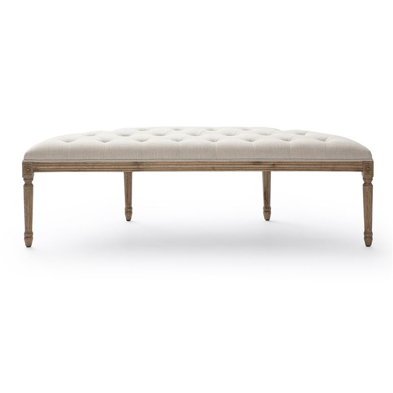 Featuring a softly tufted top and upholstered in a quality fabric, it offers a plush, textured finish that complements both neutral and more decorative interiors. The gently curved silhouette adds a refined, sculptural element to your space, while the open design with timber legs keeps the look light and airy. Built on a sturdy timber frame, the Curved Bench promises durability as well as timeless style.