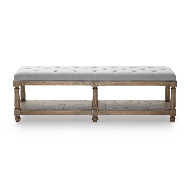 Featuring a softly tufted top and upholstered in a quality fabric, it offers a plush, textured finish that complements both neutral and more decorative interiors. The elongated silhouette brings a refined, sculptural element to your space, while the storage shelf beneath the seat is perfect for tucking away blankets, shoes, books or accessories. Built on a sturdy timber frame, the Olivia Bench promises durability as well as timeless style.